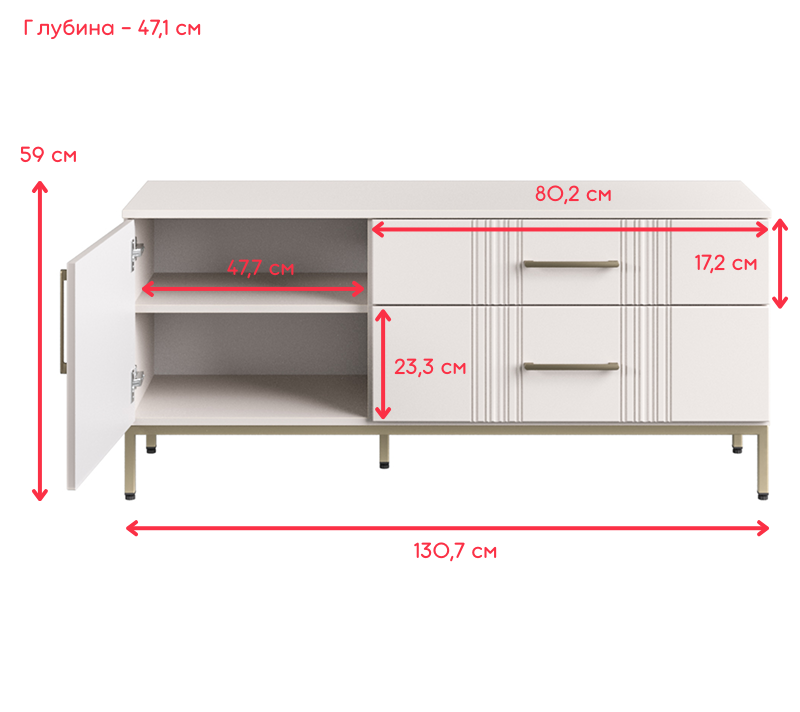 Тумба под телевизор Бетти кашемир RTV1D2S
